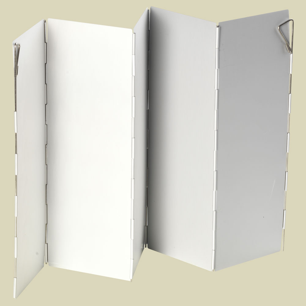 Neues, leichtes Modell in solider Verarbeitung. Mit Hilfe des Windschutzes wird die Heizleistung bzw. Brennzeit des Kochers oder Grills wesentlich gesteigert. Manchmal wird das Kochen erst durch einen Windschutz möglich und die Sicherheit wird erheblich verbessert. Bei heftigen Böen sollte der Windschutz seinerseits aber auch gesichert werden. An beiden Enden mit Stiften zur Sicherung.