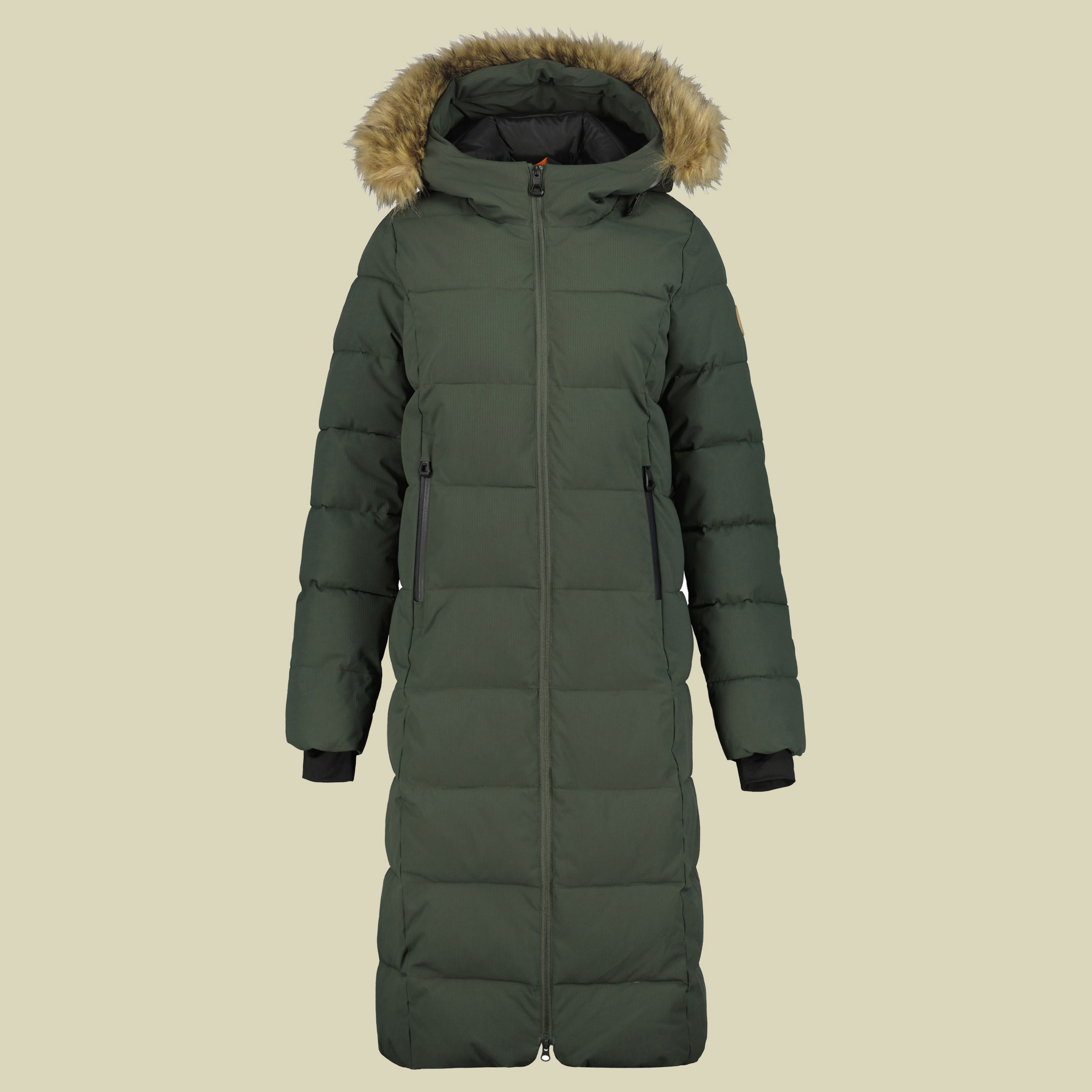 Lang und warm isoliert: die Icepeak Brilon Women hält durch die dicke Daunenimitatfüllung schön warm und ist dabei leicht. Die Kapuze hält den Kopf schön warm und schützt das Gesicht vor Wind und Kälte. Die Ärmel haben elastische innere Ärmelbündchen, die Kälte und Feuchte draußen halten. Dank des wasserabweisenden Finish bleibst du trocken und warm. Für den warm isolierten Parka Icepeak Brilon Women ist kein Wintertag zu kalt.