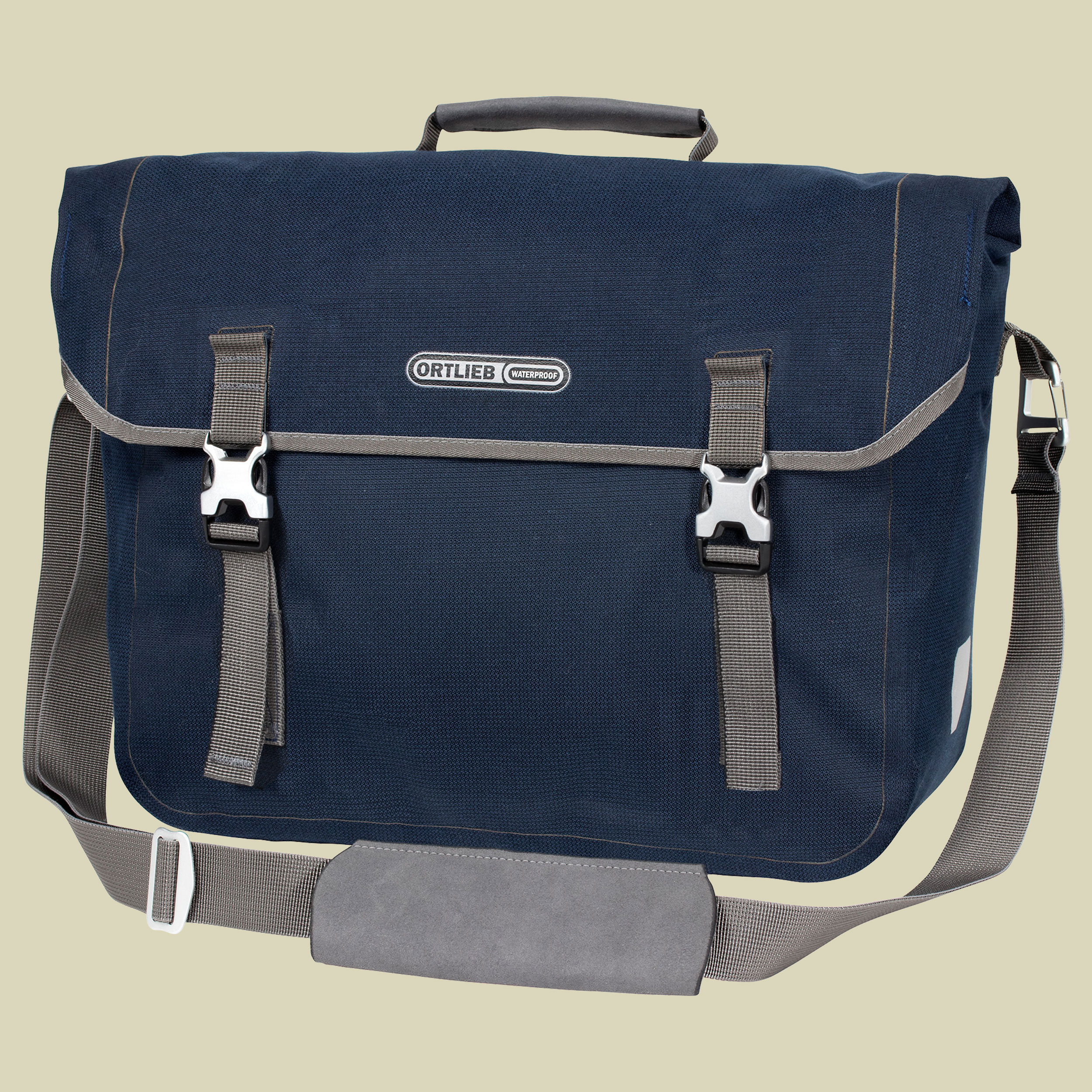 Die Fahrradtasche Commuter-Bag Two QL2.1 Urban von Ortlieb bringt lässigen Schick ins Büro! Die moderne Aktentasche aus robustem und absolut wasserdichtem Cordura-Gewebe sieht aus wie Stoff und fühlt sich auch so an. Der Deckelverschluss ist höhenverstellbar – je nach Taschenbeladung und sorgt für schnellen Zugriff auf das große Hauptfach und die gepolsterten Extrafächer, wo Notebook und Tablet bestens aufgehoben sind. Am abnehmbaren Schultergurt mit weicher Schulterpatte aus Mikrofaser lässt sich die Tasche abseits des Rades bequem über der Schulter tragen. Seitliche Reflektoren an der Commuter-Bag Two QL2.1 Urban von Ortlieb sorgen für bessere Sichtbarkeit bei Dämmerung und Dunkelheit.