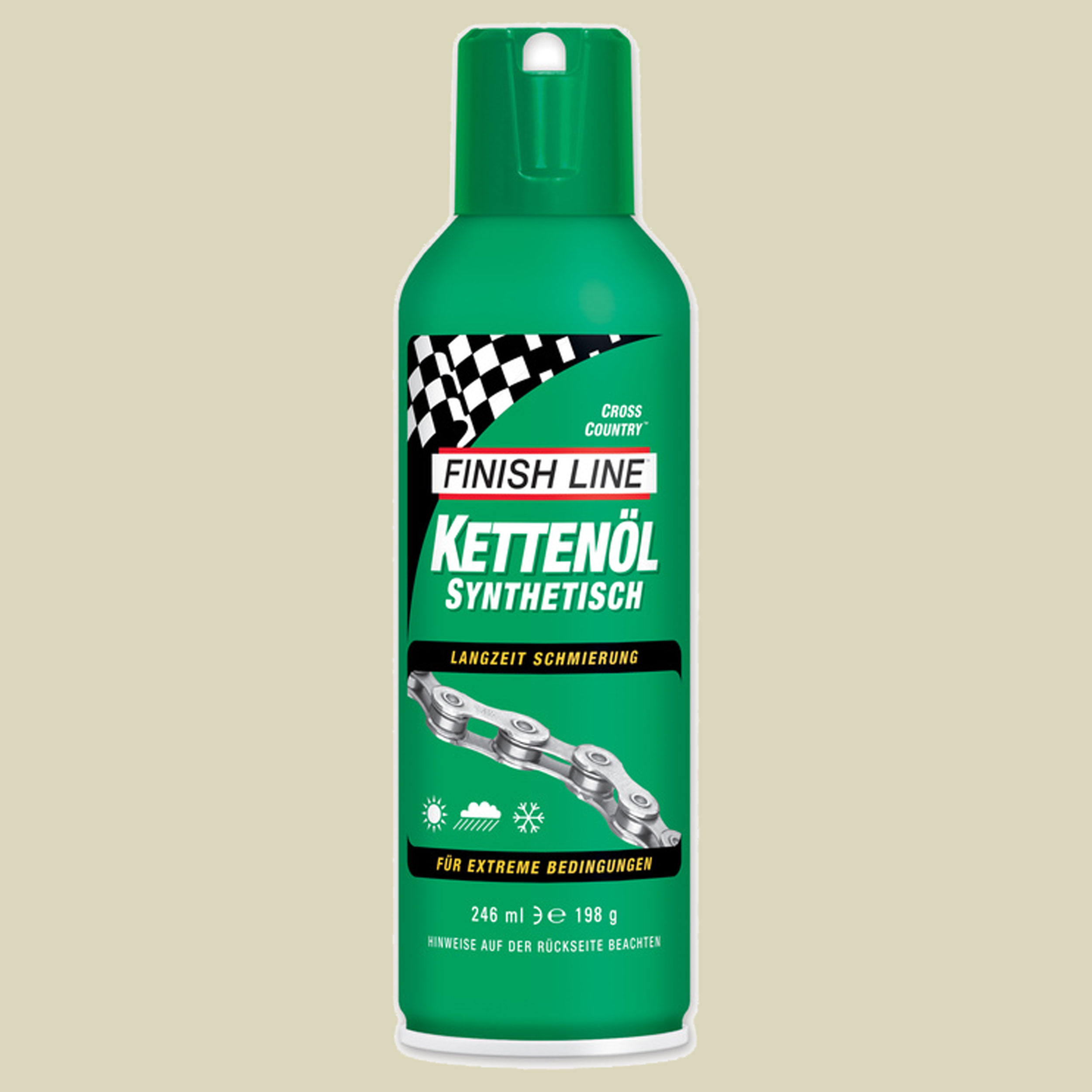 Das Cross Country Kettenöl ist der Bestseller von Finish Line. Cross Country ist ein synthetisches Öl das für höchste Druckbelastung, lange Pflegeintervalle und Nasswetterfahrten entwickelt wurde. Druckresistente Zusatzstoffe im Cross Country Kettenöl garantieren eine hohe Viskosität, sichern die ideale Schmierung der Kettenglieder und verhindern so, dass die Kette durchrutscht, schnell verschleißt und das Schalten unpräzise wird. Durch spezielle Polymere ist das Kettenöl von Finish Line wasserresistent und schützt die Metalloberfläche. Das Cross Country Kettenöl von Finish Line ist ideal für lange Fahrten bei hoher Kettenbelastung und extrem nassen Verhältnissen. (verschiedene Größen in Flaschen / Dosen , z.T. ohne Abbildung)