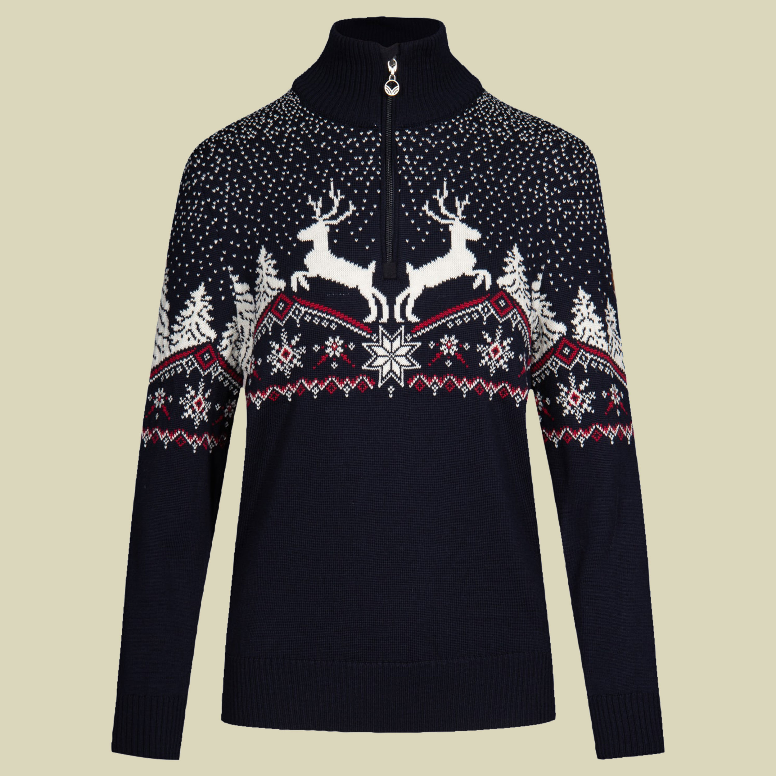 Der Dale of Norway Damen Merino Pullover Dale Christmas Sweater hat ein festliches, winterlich-weihnachtliches Design aus der traditionellen norwegischen 8 blättrigen Rose, Rentieren im Wald und angedeuteten Schneeflocken. Die edle Merinowolle ist hautweich und zweilagig verarbeitet. Der in Norwegen hergestellte Damen Merino Pullover Dale Christmas Sweater ist mit einem hohen, wärmenden Kragen ausgerüstet und besonders angenehm zu tragen. Merinowolle hat geruchshemmende, temperaturausgleichende Eigenschaften und wärmt unaufdringlich. Kleidungsstücke aus Merinowolle müssen nicht oft gewaschen werden, gutes Auslüften an der frischen Luft kann so manche Wäsche ersetzen.