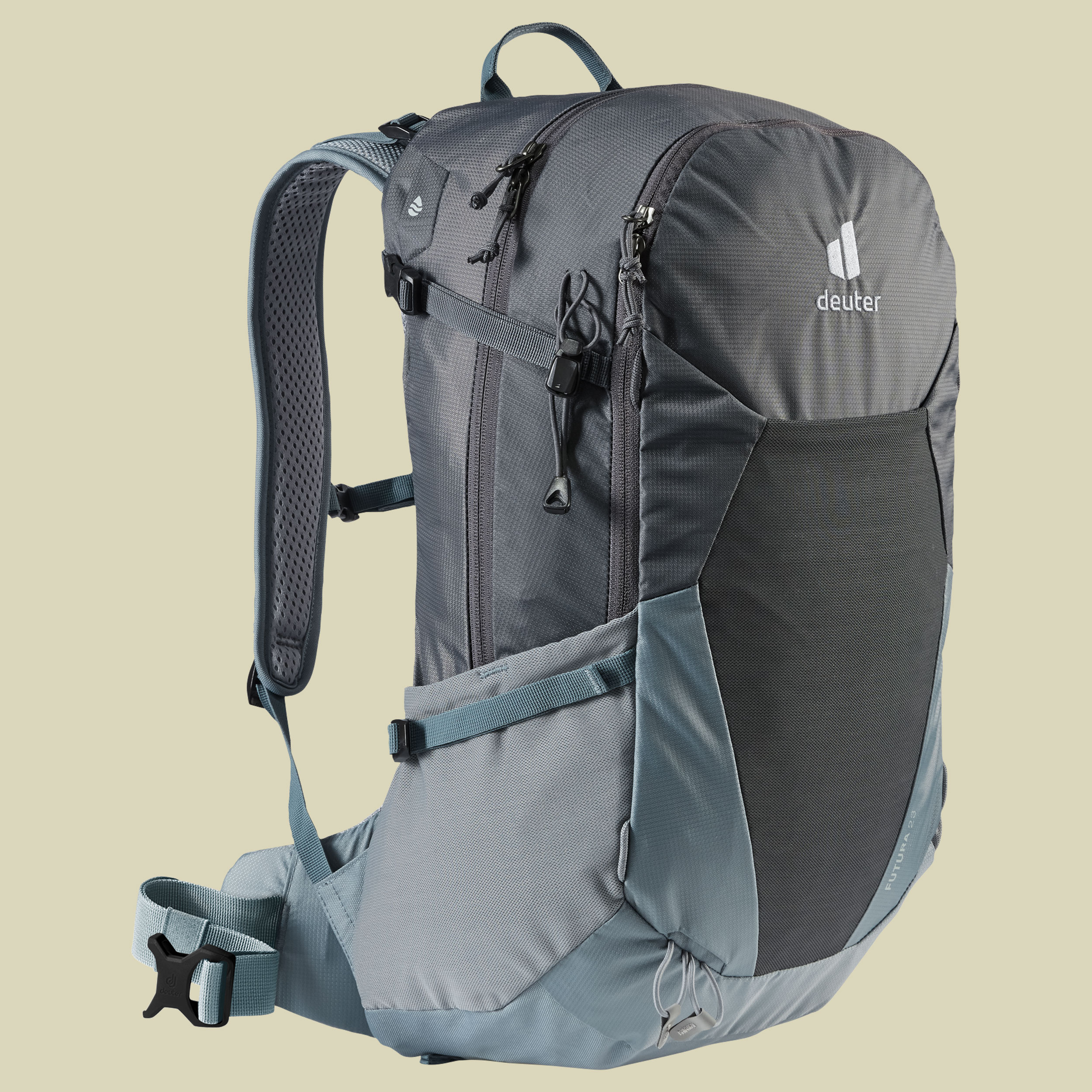 Der Wanderrucksack Futura 23 von Deuter ist ein gut ausgestatteter Begleiter bei sportlichen Tageswanderungen. Der Rücken des Deuter Wanderrucksacks Futura 23 ist hervorragend belüftet und gewährt maximalen Luftaustausch. Damit für den nötigen Getränkevorrat gesorgt ist, kann der Futura 23 mit einem Trinksystems bestückt werden (Trinkblase max. 3 Liter). Die Wanderstöcke finden an den dafür vorgesehenen Halterungen ihren Platz. Viele weitere durchdachte Ausstattungsdetails des Deuter Wanderrucksacks Futura 23 machen die Wandertour zu einem unbeschwerten Erlebnis. Naturfreunde werden sich über den Anteil an recyceltem Material freuen, denn Deuter ist sehr bemüht, nachhaltig und umweltfreundlich zu produzieren.