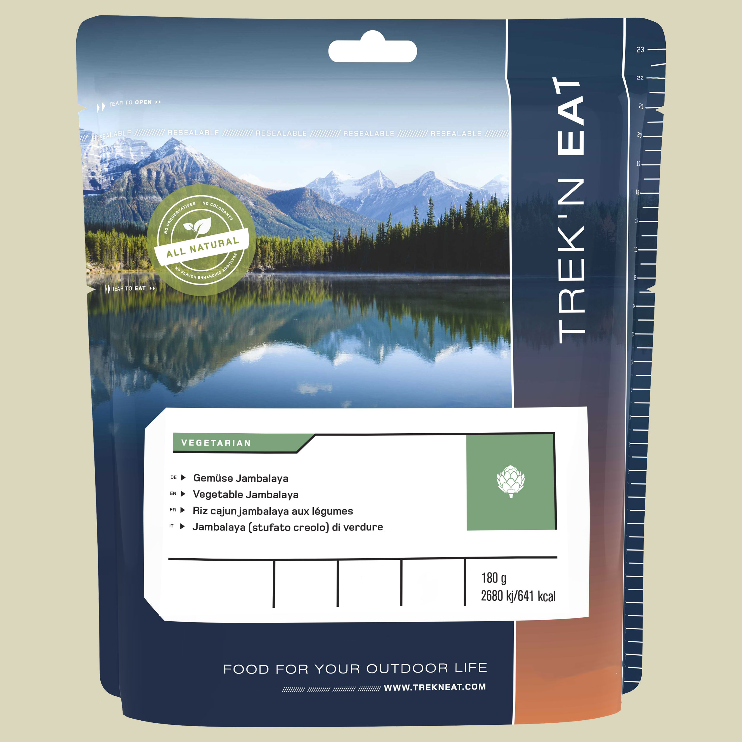 Ob auf Reisen, Expeditionen, auf Booten oder Familienausflügen in der Natur, Trek'n Eat Outdoor-Gerichte im wiederverschließbaren Standbeutel sind einfach zuzubereiten und aus hochwertigen Zutaten mit authentischem Geschmack hergestellt. Durch das Gefriertrocknen bleiben Vitamine und Mineralien erhalten, gleichzeitig enthalten die Gerichte weder Konservierungsstoffe noch Geschmacksverstärker. Für die Zubereitung muss lediglich kochendes Wasser in den Beutel gegeben werden (eine Fülllinie ist vorhanden). Der Kaloriengehalt orientiert sich an ca. 600 Kalorien pro Gericht und deckt so den erhöhten Kalorienverbrauch bei sportlicher Aktivität. Die einfache Zubereitung, das leichte Gewicht und die Brennstoffersparnis sind weitere Vorteile, die Trek'n Eat Gerichte zur idealen Ernährung unterwegs machen.
