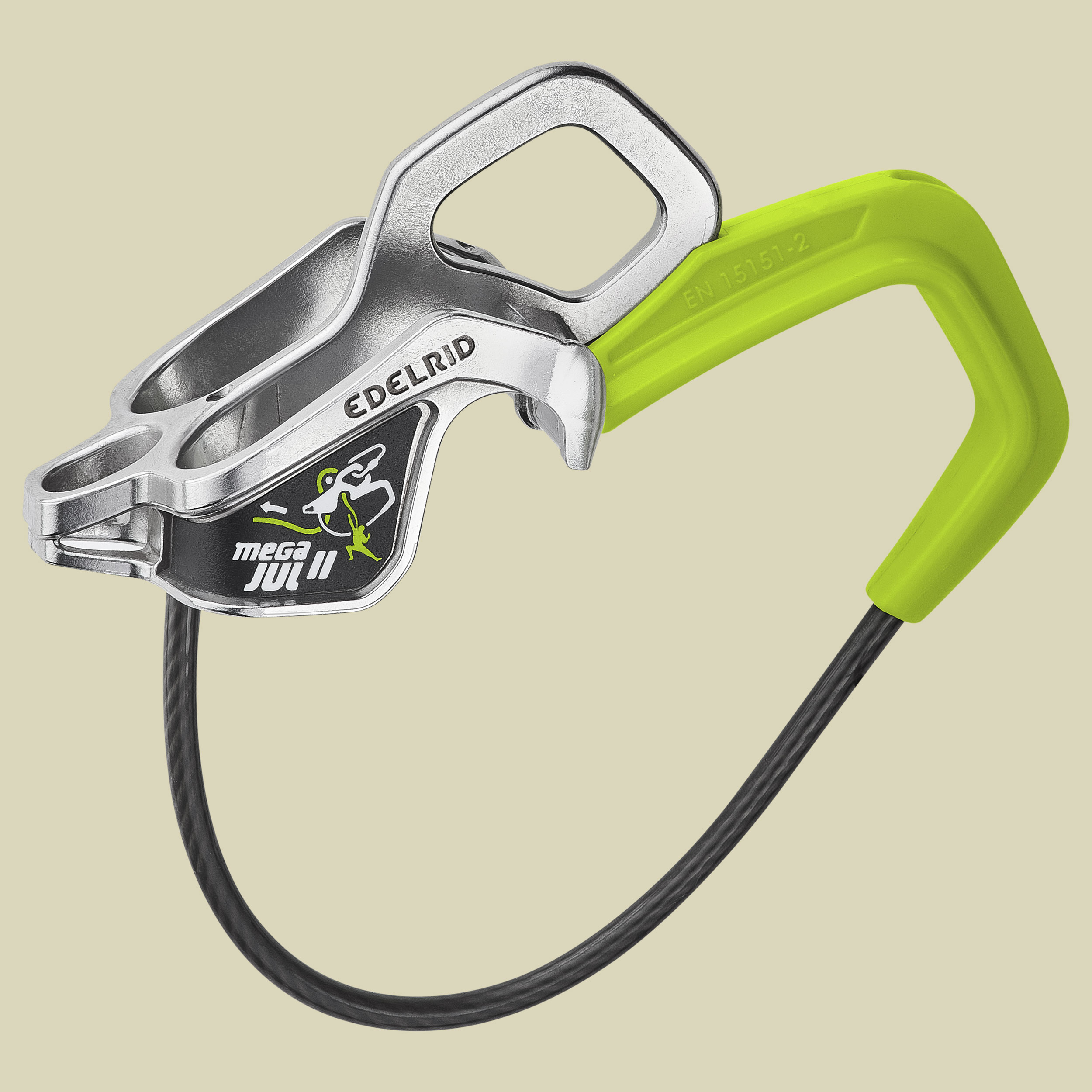 Die erhöhte Bremswirkung der neuen Gerätegeometrie unterstützt die sichernde Person beim Auffangen des Sturzes im Vorstiegsmodus. Vorteile des Megal Jul: Schnelleres Seilausgeben im Vorstieg durch Bedienen mittels Daumenbügel; Zusätzliche Öse zum Entriegeln des Gerätes im Nachstiegsmodus mittels Karabiner.