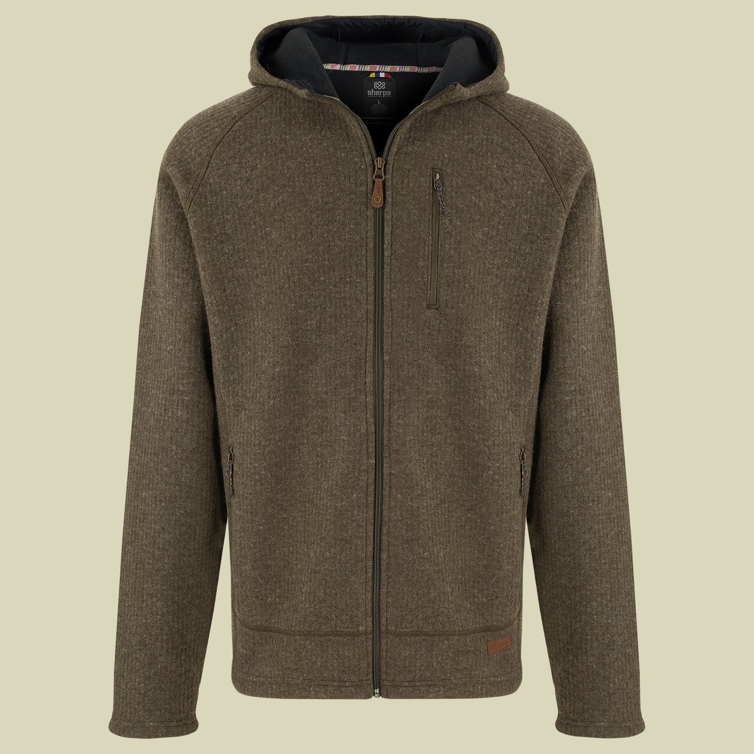 Die doppellagige Herren Fleecejacke Namgyal Hoodie Men von Sherpa wurde in Nepal handgefertigt. Die Außenseite ist aus warmem, windabweisendem Wollmischgewebe, die Innenseite aus weichem Polyesterfleece. Eine Brusttasche und zwei Handwärmertaschen mit Reißverschlüssen sowie eine Kapuze gehören zur Ausstattung der unverwüstlichen und schönen Sherpa Fleecejacke Namgyal Hoodie Men. Die Namgyal Hoodie ist maschinenwaschbar und eignet sich auch sehr gut als wärmende Schicht unter einer Wetterschutzjacke. Übrigens: Mit dem Kauf dieser Jacke wird nepalesischen Kindern ein Schultag ermöglicht.