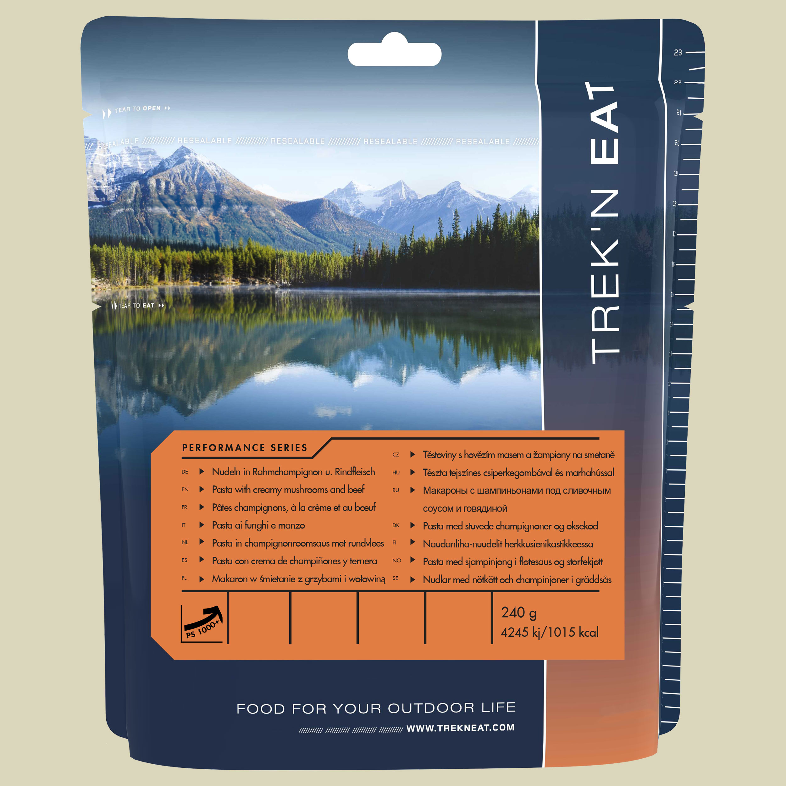 Ob auf Reisen, Expeditionen, auf Booten oder Familienausflügen in der Natur, Trek'n Eat Outdoor-Gerichte im wiederverschließbaren Standbeutel sind einfach zuzubereiten und aus hochwertigen Zutaten mit authentischem Geschmack hergestellt. Durch das Gefriertrocknen bleiben Vitamine und Mineralien erhalten, gleichzeitig enthalten die Gerichte weder Konservierungsstoffe noch Geschmacksverstärker. Für die Zubereitung muss lediglich kochendes Wasser in den Beutel gegeben werden (eine Fülllinie ist vorhanden). Der Kaloriengehalt orientiert sich an ca. 600 Kalorien pro Gericht und deckt so den erhöhten Kalorienverbrauch bei sportlicher Aktivität. Die einfache Zubereitung, das leichte Gewicht und die Brennstoffersparnis sind weitere Vorteile, die Trek'n Eat Gerichte zur idealen Ernährung unterwegs machen.