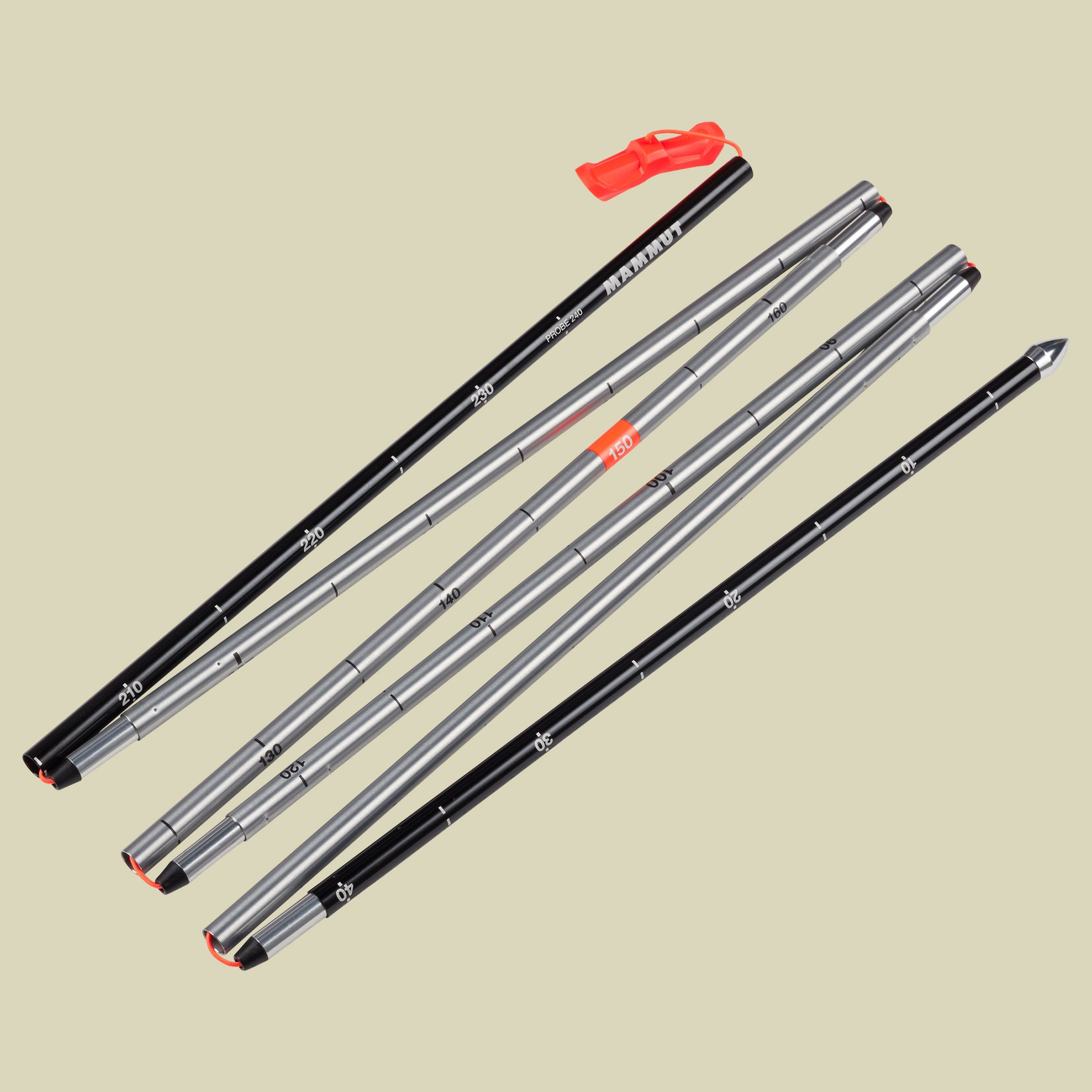 Die Lawinensonde PROBE 240 von Mammut hat eine Gesamtlänge von 240 cm. Die Sonde Probe 240 besteht aus 6 Segmenten und kann auf eine Länge von 45 cm zusammengefaltet werden. Mit gerade einmal 275 g wiegt diese stabile Lawinensonde aus langlebigem Aluminium nur wenig und kann durch die geringe Größe recht einfach im Rucksack mitgenommen werden. Bei allen Aktivitäten in lawinengefährdetem Gebiet gehört eine Lawinensonde zur absoluten Grundausstattung! Praktische Details: Die Probe 240 von Mammut bietet eine einseitige Sondenskalierung zum einfachen Ablesen und kann auch mit Handschuhen leicht bedient werden.