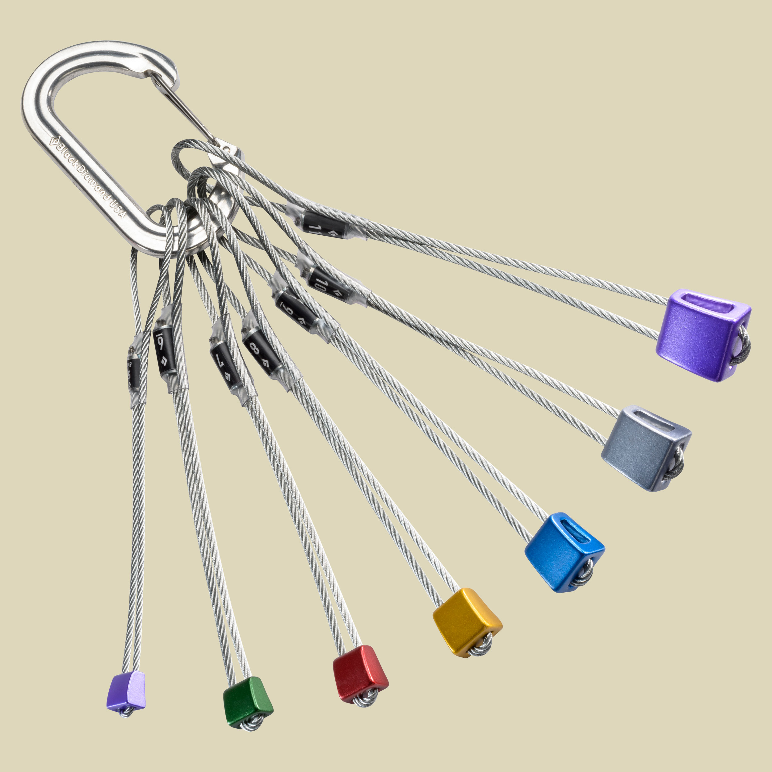 Die vielfach bewährten Stopper von Black Diamond bieten mit ihrer konisch verlaufenden Form besonders gute Platzierungsmöglichkeiten in enger werdenden Rissen. Durch die abgerundete Form lassen sich die Keile besonders einfach wieder entfernen. Unterschiedliche Farbkodierungen ermöglichen ein rasches Auffinden der benötigten Größe. Lieferumfang: Stopper Set in den Größen 5-11 aufgereiht auf einem OvalWire-Karabiner Gesamtgewicht: 281g