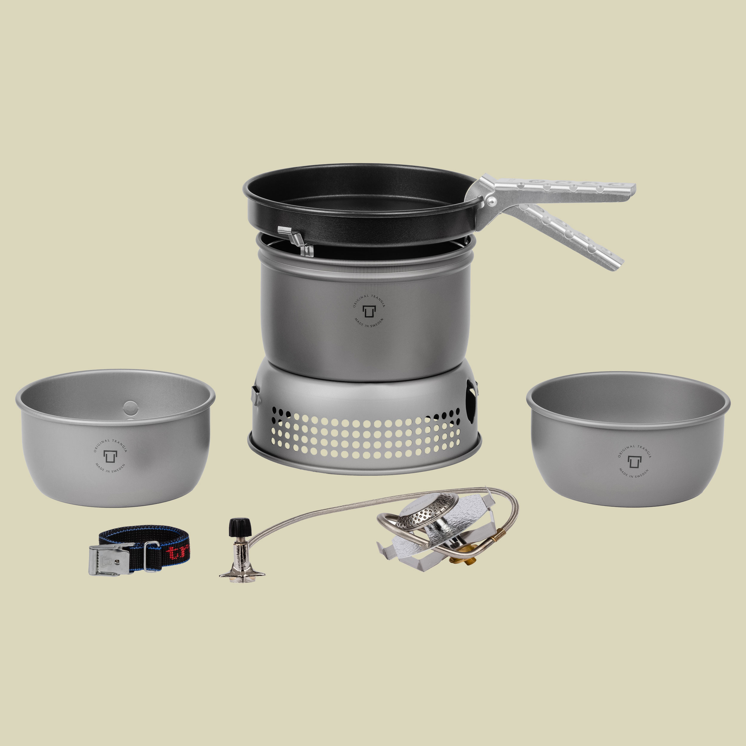 Der Trangia Sturmkocher klein 27-3 HA /GB ist aus ultraleichtem Aluminium, hart eloxiert. Das Kocherset eignet sich optimal für Solowanderer oder 2 Personen. Durch sein kleines Packmaß braucht es im Rucksack nur wenig Platz. Alle Kocher der Serie 27 enthalten zwei 1-Liter-Töpfe, einen mit Maßeinteilung und einen ohne, eine 18 cm-Bratpfanne mit extra antihaft-Beschichtung, Windschutz (oben und unten), Brenner, Zange sowie Riemen. Hergestellt ist das Trangia-Set aus einer hartanodisierten Aluminiumlegierung, einem Material, das bis zu 50 % stärker als herkömmliches Aluminium und äußerst abriebfest ist. Hierdurch wird das Trangia Sturmkocher-Set leichter und abriebfester, es hält länger und ist leichter zu reinigen.