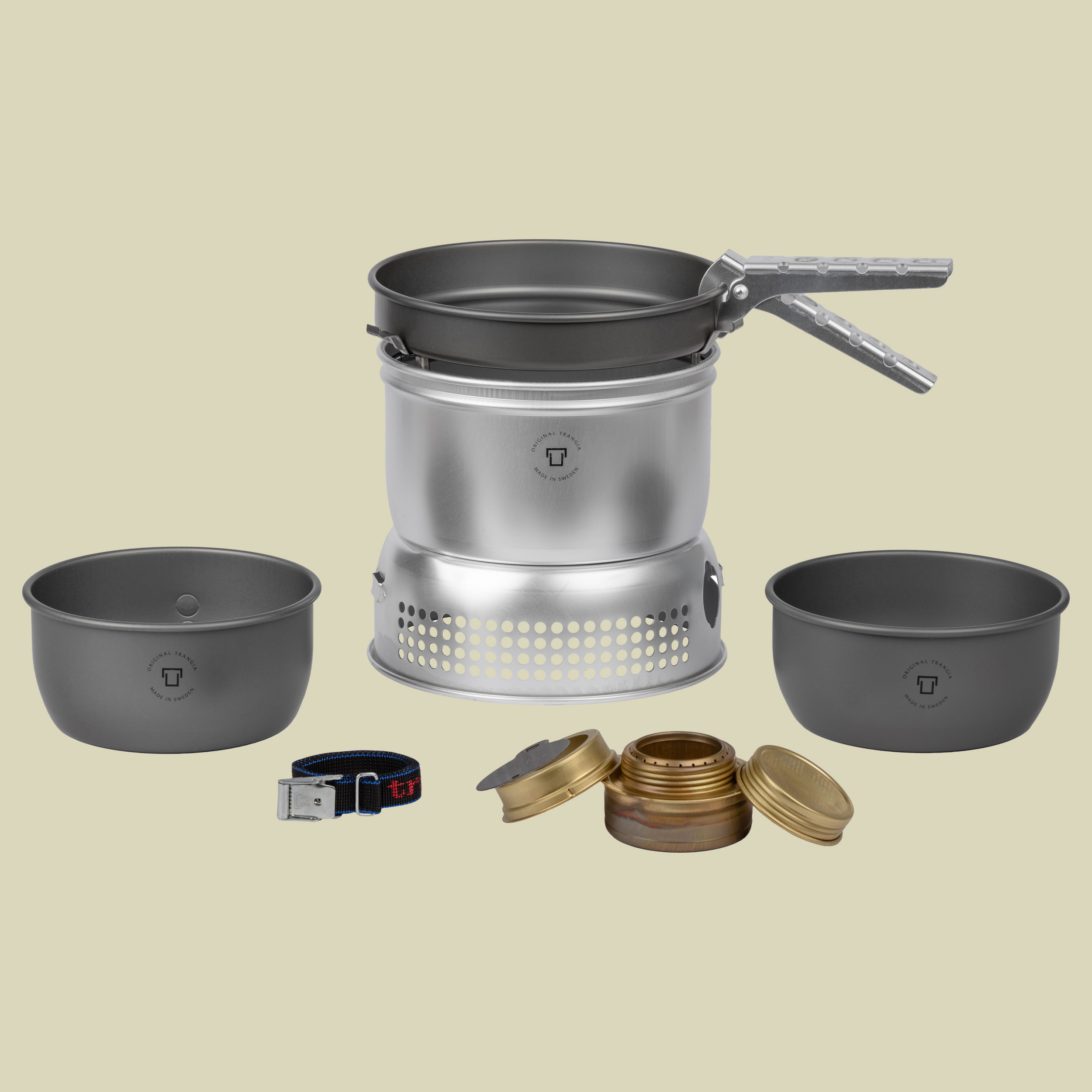 Ein Campingkocher im Set mit Camping Geschirr – der Trangia Sturmkocher klein HA ALU Töpfe + UL ALU Windschutz 27-7UL/HA: Der legendäre Spiritus Trangia Kocher ultralight hardano in kompakter Ausführung (kleiner und leichter) zusammen mit hartanodisierten Aluminium-Töpfen, -Pfanne und Ultralight Aluminium-Windschutz.