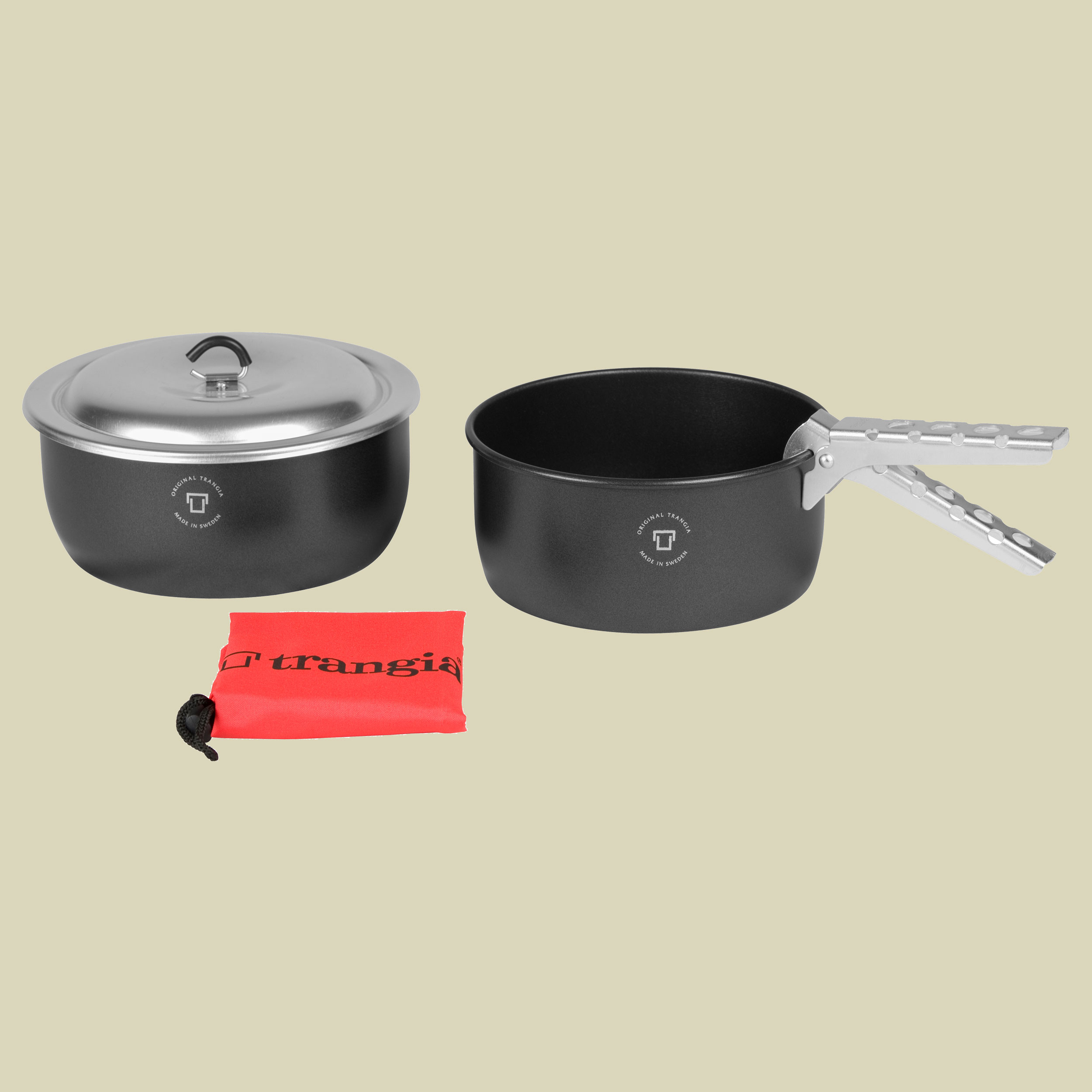 Das Trangia Topfset Tundra II Non-stick besteht aus zwei Töpfen mit antihaft-Beschichtung und einem Deckel, der auf beide Töpfe passt. Die Beschichtung ist anfälliger gegen Kratzer, daher wird die Verwendung von Kunststoff- oder Holzbesteck empfohlen. Das leichte Trangia Topfset Tundra Set II Non-stick lässt sich platzsparend ineinander stapeln und ist ideal für Outdoor-Unternehmungen verschiedenster Art.