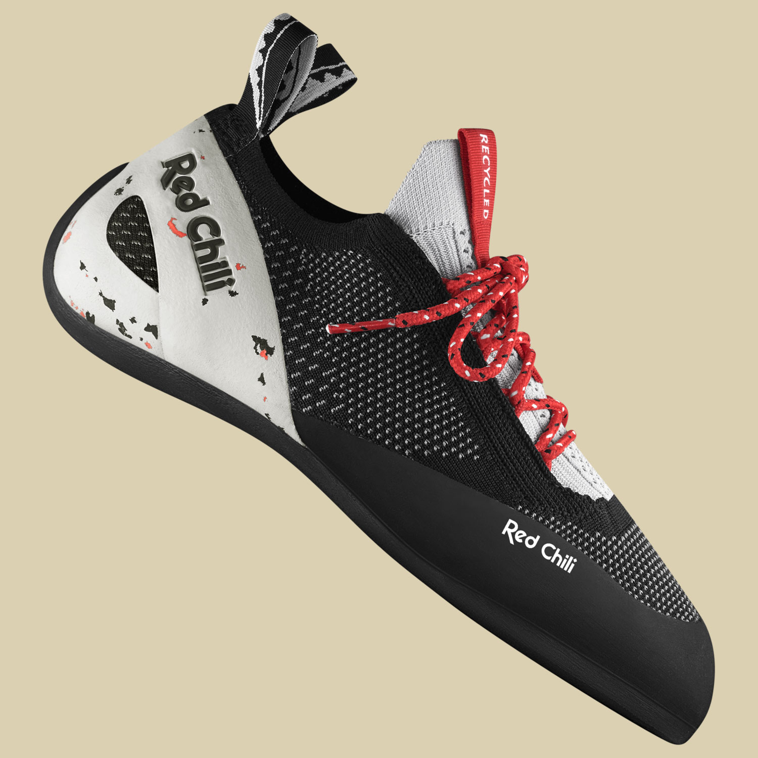 Der Ventic Air Lace aus dem Hause Red Chili ist ein moderner Kletter- und Boulderschuh für lange Trainingssessions drinnen und draußen. Das Obermaterial des Ventic Air Lace ist aus bequemem Strick-Material mit unterschiedlich starken Stretchzonen für maximale Atmungsaktivität und eine präzise abgestimmte Passform. Die minimale Vorspannung und die wenig asymmetrische Form sorgen für maximalen Tragekomfort. Der Red Chili Ventic Air Lace ist ein Meilenstein in Sachen Nachhaltigkeit, alle textilen Komponenten sind aus recyceltem Polyester nach dem Global Recycled Standard produziert. Mit bester Performance und viel Komfort kann der Ventic Air Lace für zeitintensive Session im Gym oder bei Mehrseillängen-Touren zum Einsatz kommen.